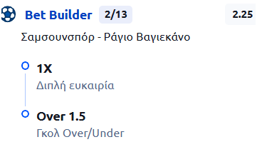 Χαμένο- Εκκρεμεί. Σαμψουνσπόρ-Ράγιο Βαγιεκάνο 1Χ / OVER 1,5 2.25