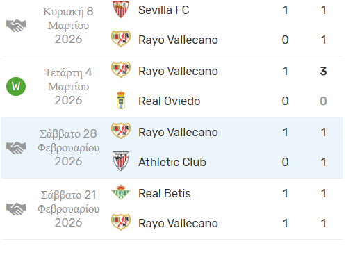 Η αρχή του κακού έγινε στην εντός έδρας ήττα 1-2 από την Α.Ε.Κ και μετά δεν μπόρεσε να πάρει τίποτα. Έτσι, βρέθηκε στα Play-Offs. Εύκολο «έργο» με την Σκεντίγια, όπως αναφέραμε και ποιο πάνω και τώρα Ράγιο Βαγιεκάνο.