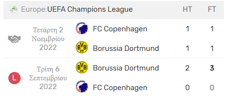 Κοπεγχάγη-Ντόρτμουντ (22:00)