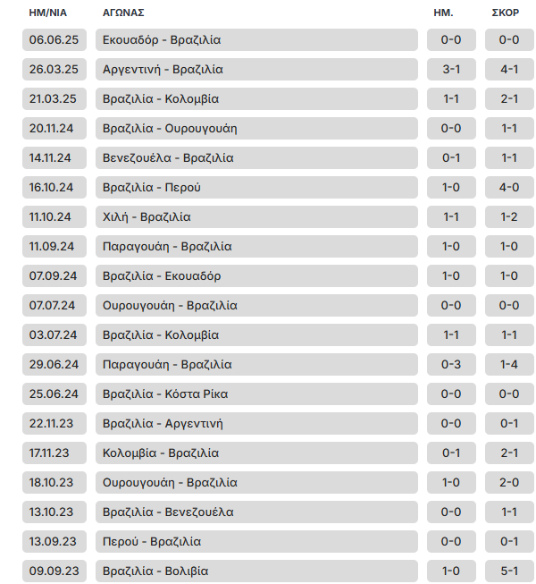 Στο παιχνίδι με την Βραζιλία τώρα, η «Λα Αλμπιρόχα», πάει με στόχο, ακόμα ένα θετικό αποτέλεσμα και να «σπάσει» μία πολύ κακή παράδοση σε αυτά τα γήπεδα. 1-9-24 το ρεκόρ.