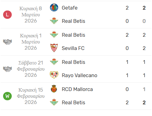 Είχαν προηγηθεί οι ισοπαλίες με Βαγιεκάνο (1-1) αρχικά και αυτή με την Σεβίλλη εντός έδρας στο ντέρμπι με 2-2. Στο ματς αυτό, ήταν πολύ καλή για ογδόντα λεπτά, αφού ήταν και μπροστά στο σκορ με 2-0, αλλά ξαφνικά «βραχυκύκλωσε» και δεχόμενη δύο τέρματα, έμεινε με τον βαθμό της ισοπαλίας.