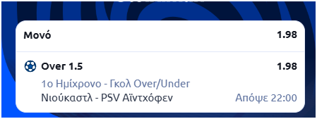 Επομένως, φαβορί (Νιούκαστλ) του 1,37 και του 1,40 και σε ένα τόσο κρίσιμο παιχνίδι, σε αυτήν την διοργάνωση, δεν υφίσταται.