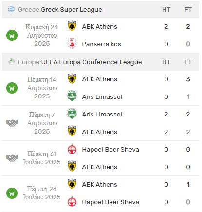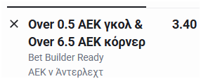 Πρόβλεψη: ΑΕΚ : OVER 0,5 G / AEK OVER 6,5 CORNERS