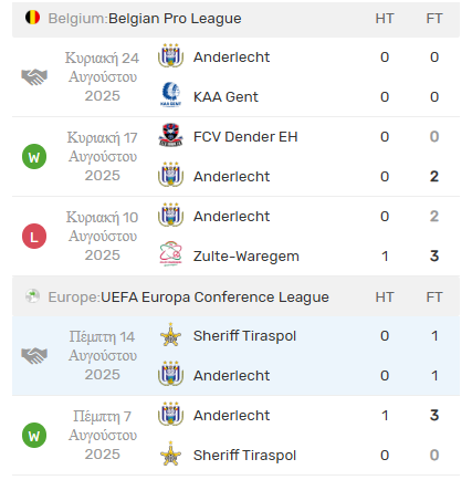 Πάντως, δεν έχουν αρχίσει άσχημα την σεζόν. 6-2-1 σε όλες τις διοργανώσεις ως τώρα και αν μίτοι άλλο, δείχνουν μία ομάδα που χάνει δύσκολα. Ως τώρα φυσικά, αφού εκτός της Α.Ε.Κ ακόμα, δεν έχει βρει το «μεγαθήριο» μπροστά της η Άντερλεχτ.