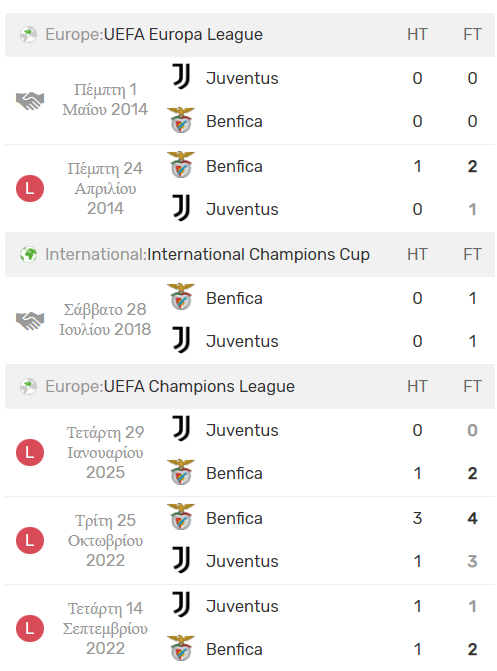 Αδικούν πολύ την Μπενφίκα μάλιστα, αφού σε πέντε παιχνίδια με την Γιουβέντους και ανεξάρτητου έδρας έχει τέσσερις νίκες και μία ισοπαλία!